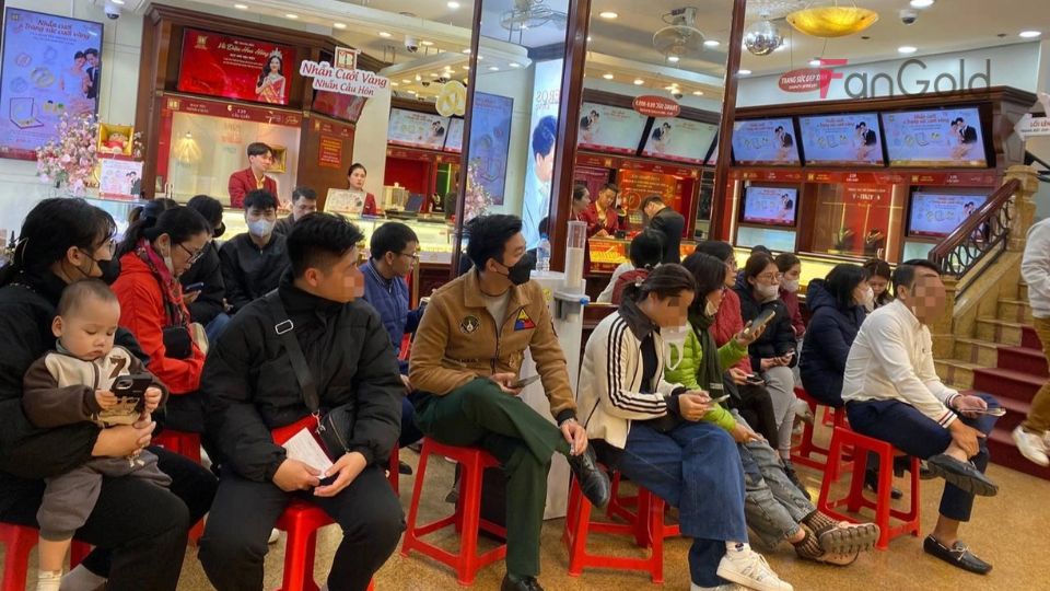- Tại TP.HCM, các cửa hàng như Mi Hồng, PNJ, DOJI cũng đông nghịt khách. Một số nơi thậm chí phải thông báo hết hàng hoặc giới hạn số lượng bán ra để đảm bảo nguồn cung.
